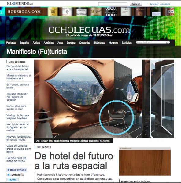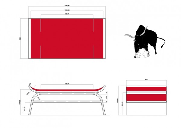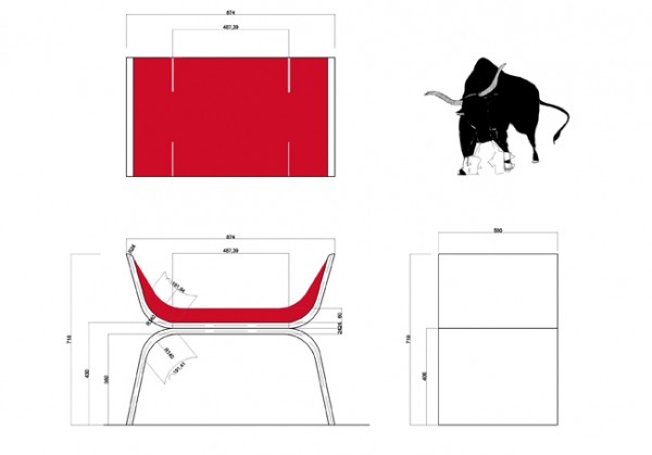 La silla está inspirada por la pasión española del toro. Las lineas modernas y limpias de la silla evocan los cuernos del animal temido. El tema que incorpora el rojo puede ser una representación de la brutalidad que reclaman algunos críticos del deporte o puede ser la representación de los que esperan preservar la tradición histórica para los siglos del futuro. De las dos perspectivas ¡la pasión española vive en este diseño!