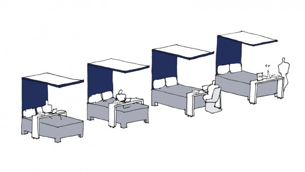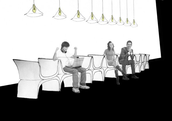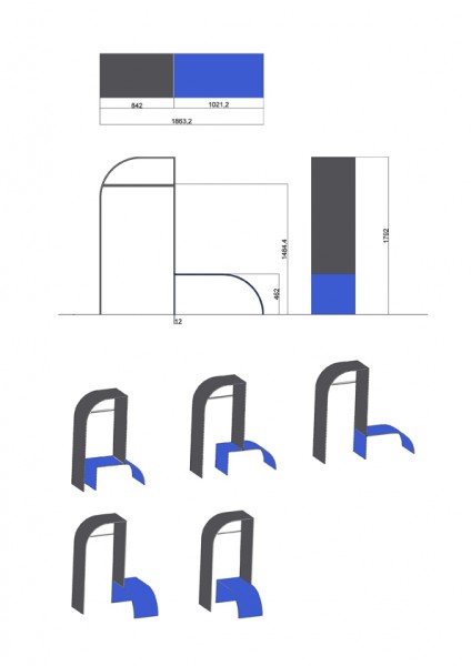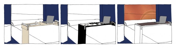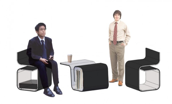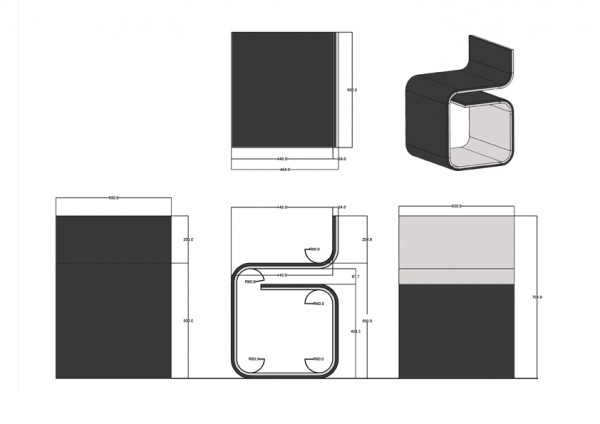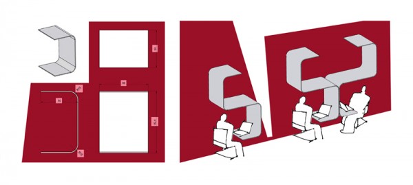 With one simple form, a multitude of designs can be arranged. The C-unit was designed to fit the measurements needed for a laptop cove. When the shape is flipped, the space is equipped with a shelving system, allowing the user of the space to have a comfortable area to store bags.