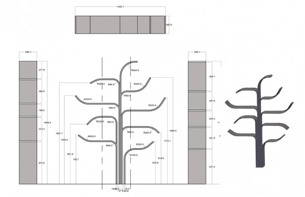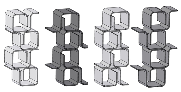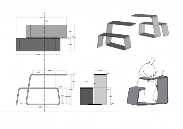 Mesa paralela presenta un estudio de la creación de formas con una pieza única de material. Este estudio investiga una variedad de estética de las formas.