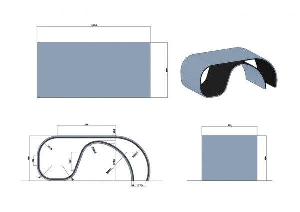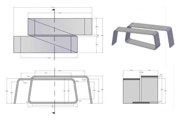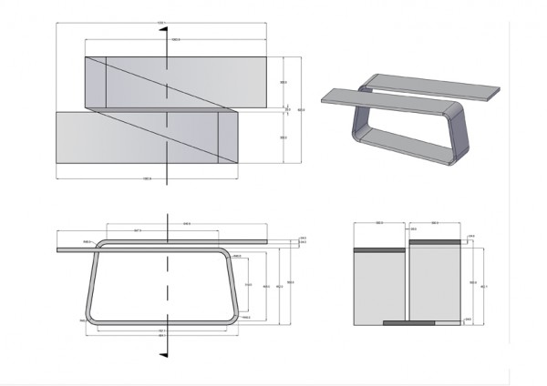 Mesa paralela presents a further study of forms being created with one fluid piece of material. This study investigates the various aesthetics of the shape.